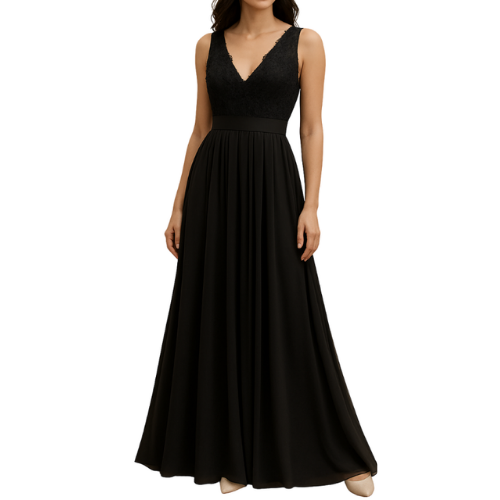 Black Lace V-Neck Maxi Dress