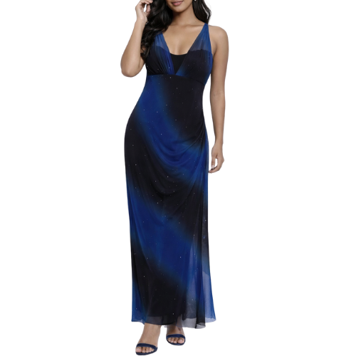 Blue and Black Maxi Dress with Halter Neck and Glitter
