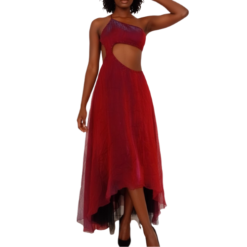 Long Maroon Dress with Open Tummy