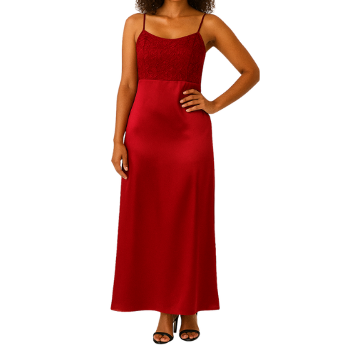 Long Maroon Silk Dress with Lace