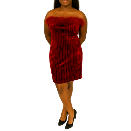 Maroon Velvet Strapless Mini Dress
