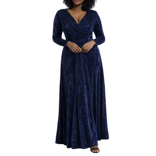 Navy Blue Velvet Long Sleeve Maxi Dress